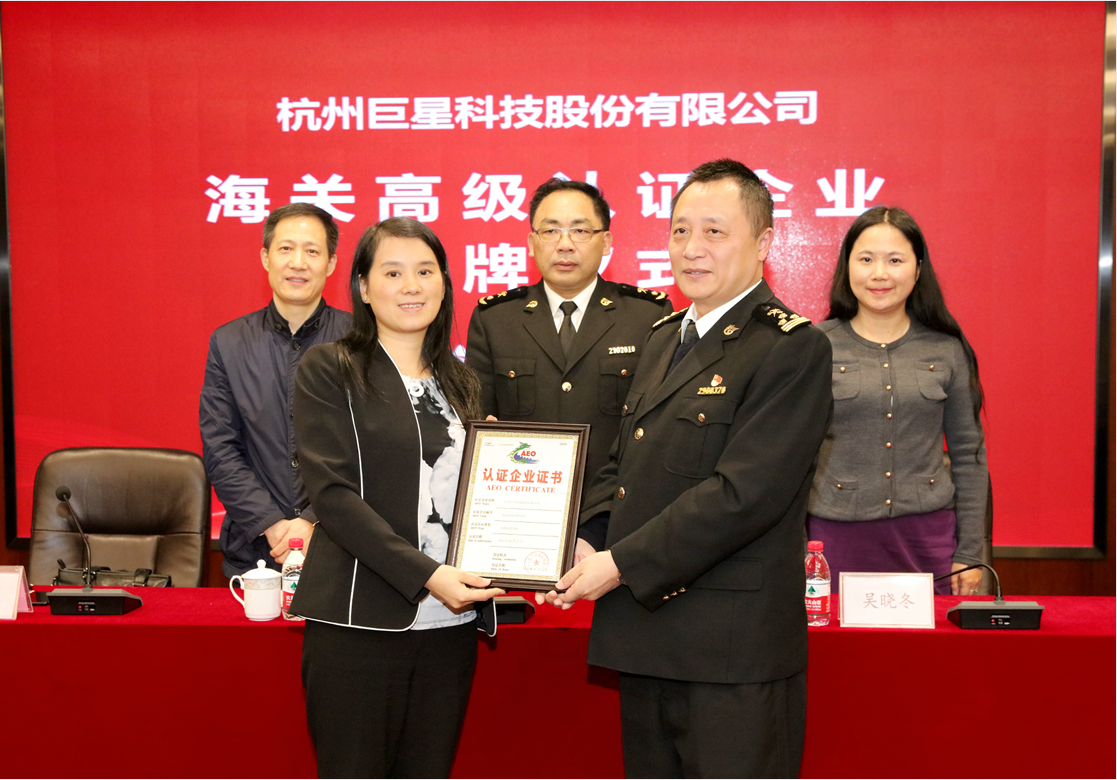 11月16日,杭州巨星科技股份有限公司(下稱“巨星科技”)獲得杭州海關(guān)頒發(fā)的 “海關(guān)高級(jí)認(rèn)證企業(yè)證書”(簡(jiǎn)稱AEO),相當(dāng)于獲得杭州海關(guān)“綠色通行證”。